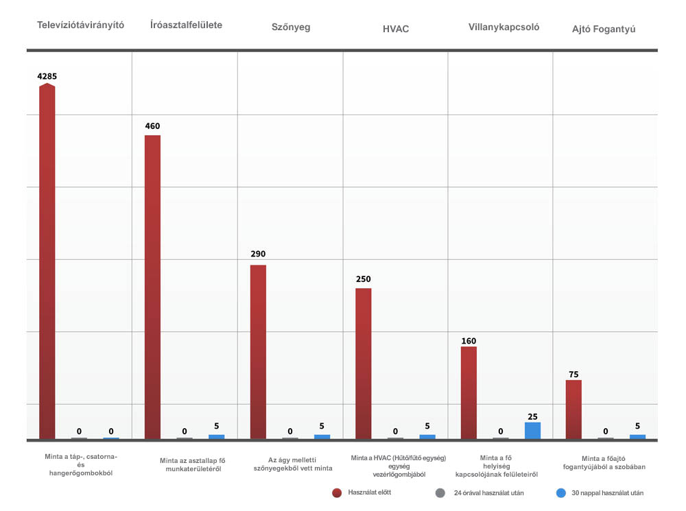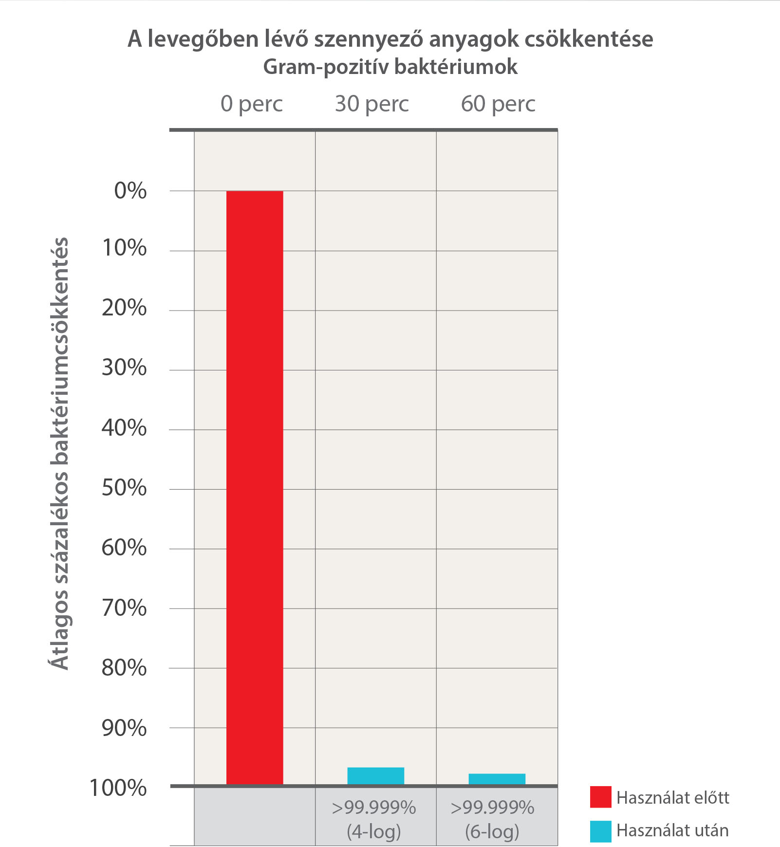 • Csökkenti a levegőben lévő és a felületi szennyeződéseket.